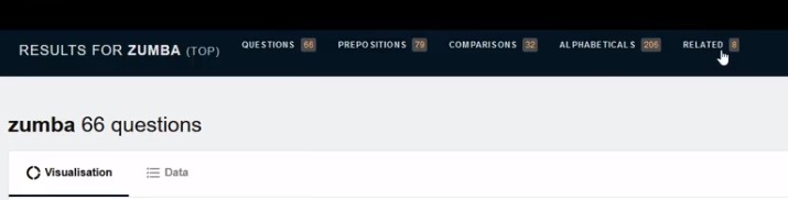 Wir sehen hier oben schon 66 fragen, 79 Präpositionen, 32 Wergleiche, 206 Treffer nach dem Alphabet und 8 verwandte Suchanfragen zum Thema Zumba. Diese stimmen auch mit der Google-Suche mehr oder weniger überein, aber hier hat man schon jede Menge Holz. Es ist das einzige Tool, das man eigentlich für solche Recherchen zu Themenideen benötigt.